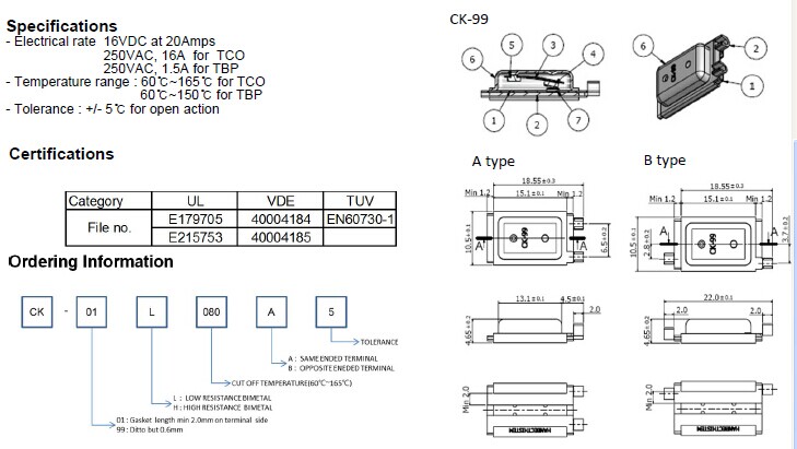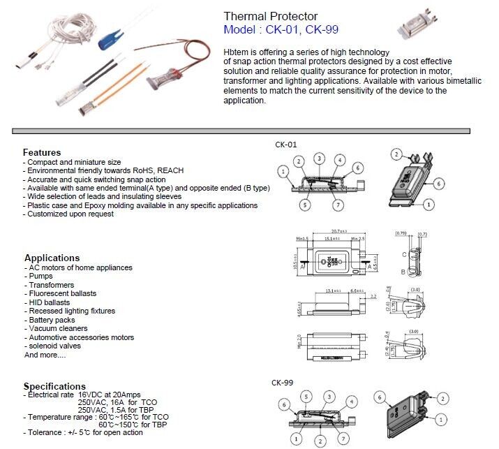 東莞市愛多電子有限公司代理韓國SEKI ,HBTEM公司生產的各系列溫控開關,其具體型號規格如下: