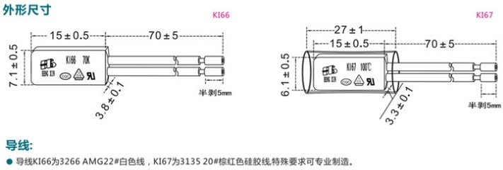 KI66/KI67優點:體積小 便于安裝 速動型雙金屬片 真空浸漆工藝 反應速度快;