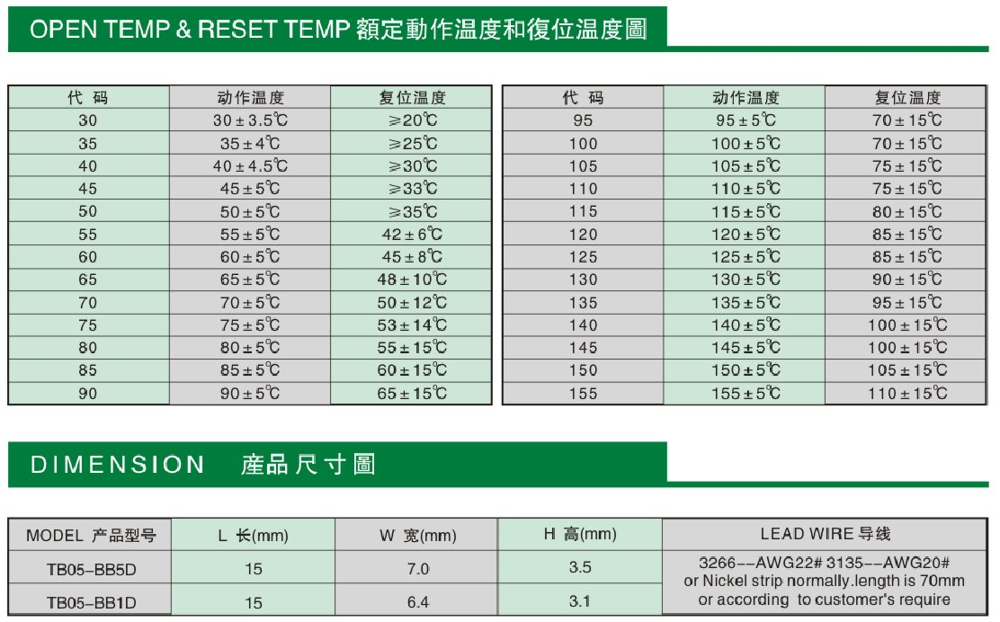 東莞市愛多電子有限公司銷售TB05系列各規(guī)格溫控開關(guān),具體規(guī)格如下: