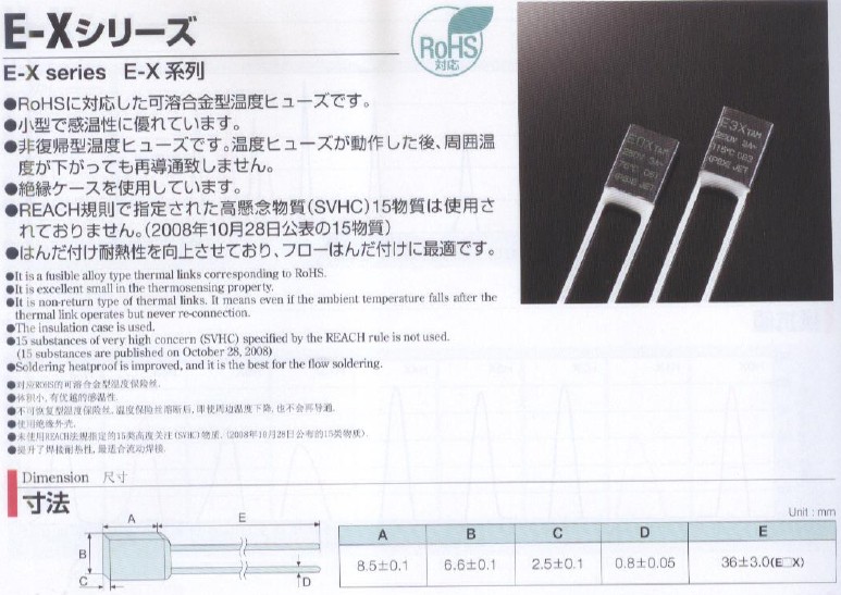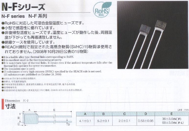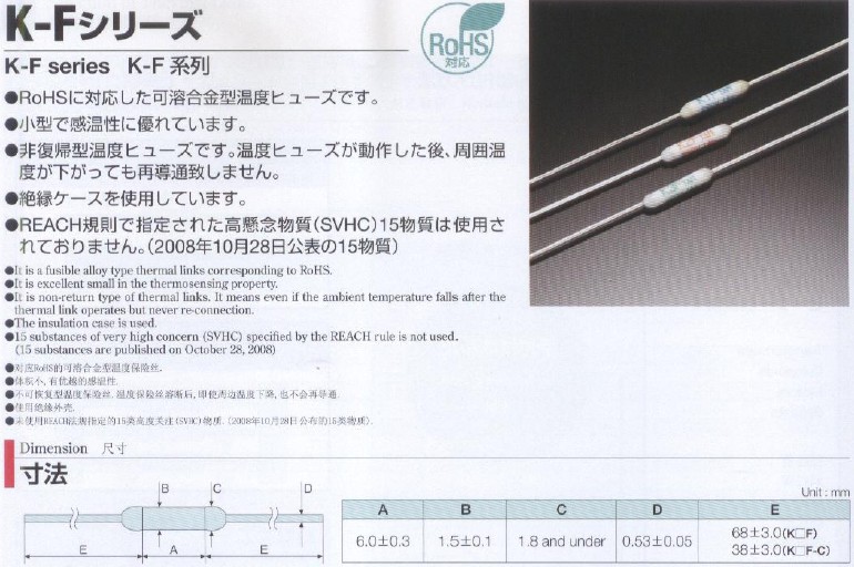 東莞市愛多電子有限公司銷售日本田村TAMURA各種型號溫度保險絲,其具體型號規(guī)格如下: