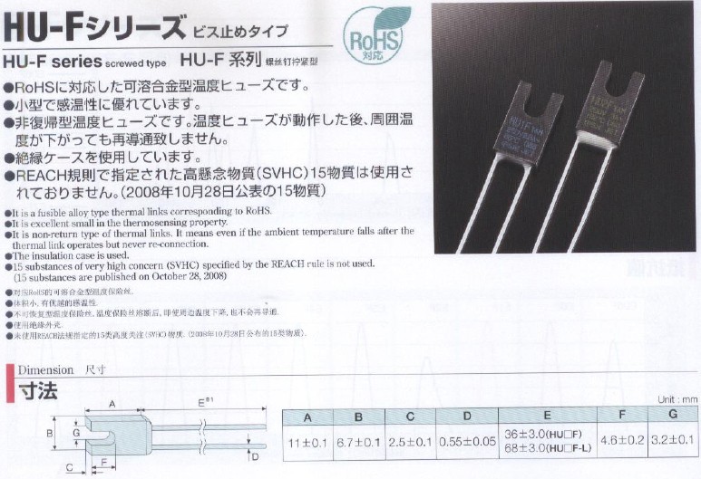 10)HU-F系列,AC250V 2.0A-3.0A/AC125V 3.0-3.5A;具體型號如下: